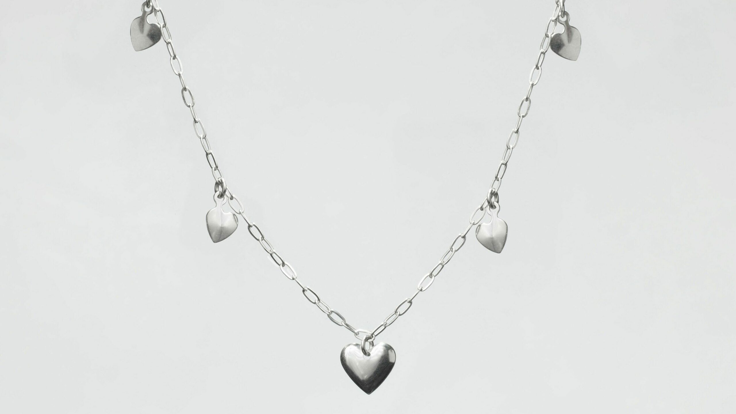 Verleihe deinem Look einen Hauch von Romantik und zeitloser Eleganz mit dieser zarten Herzkette aus hochwertigem Edelstahl. Die feine Gliederkette ist mit fünf glänzenden Herzanhängern verziert, die sanft mitschwingen und für einen femininen Touch sorgen. Ob einzeln getragen oder im Layering-Look kombiniert – dieses Schmuckstück ist der perfekte Begleiter für jeden Tag und jeden Anlass.