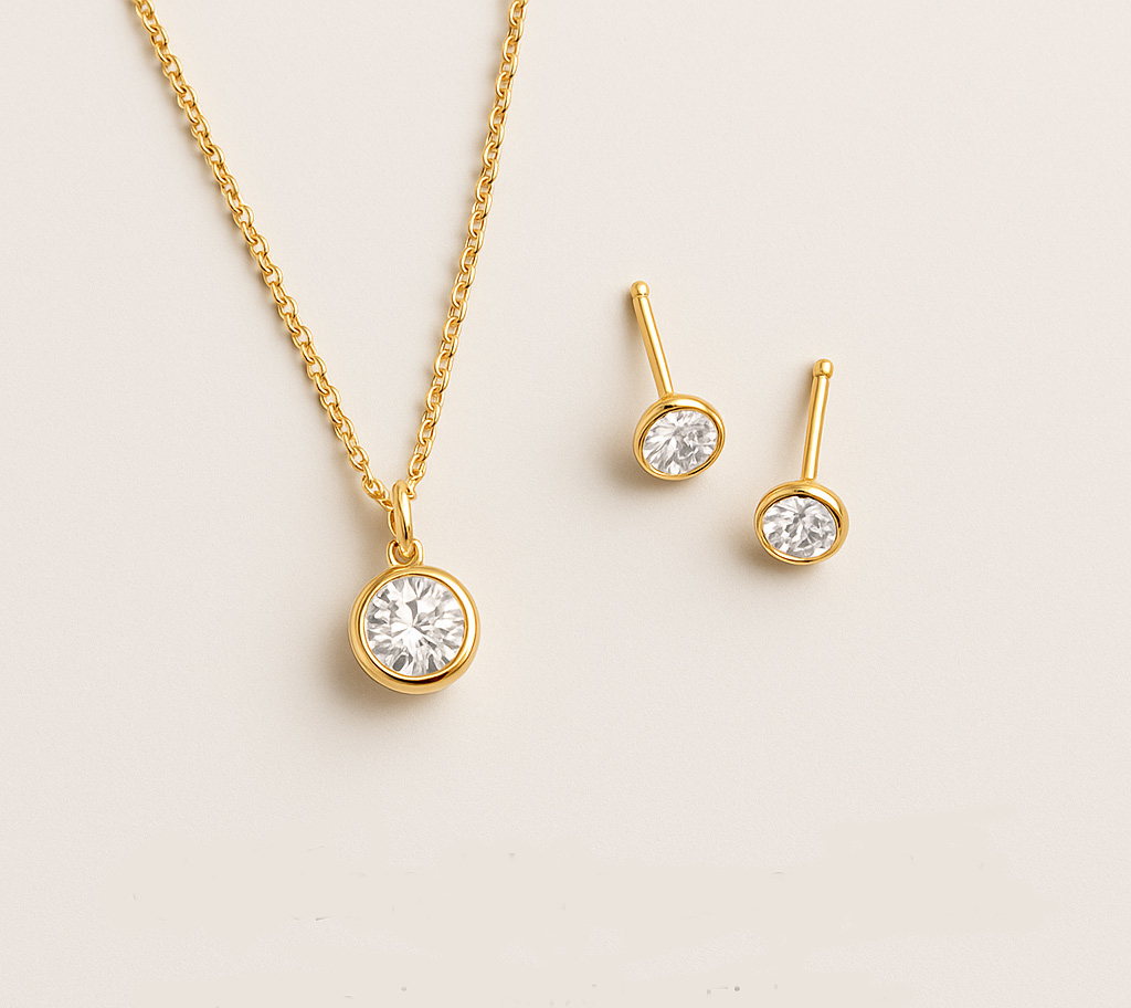 Fein funkelnde Zirkonia-Steine verleihen beiden Schmuckstücken einen dezenten, luxuriösen Glanz und machen das Set zum perfekten Begleiter für besondere Anlässe oder deinen eleganten Alltagslook.